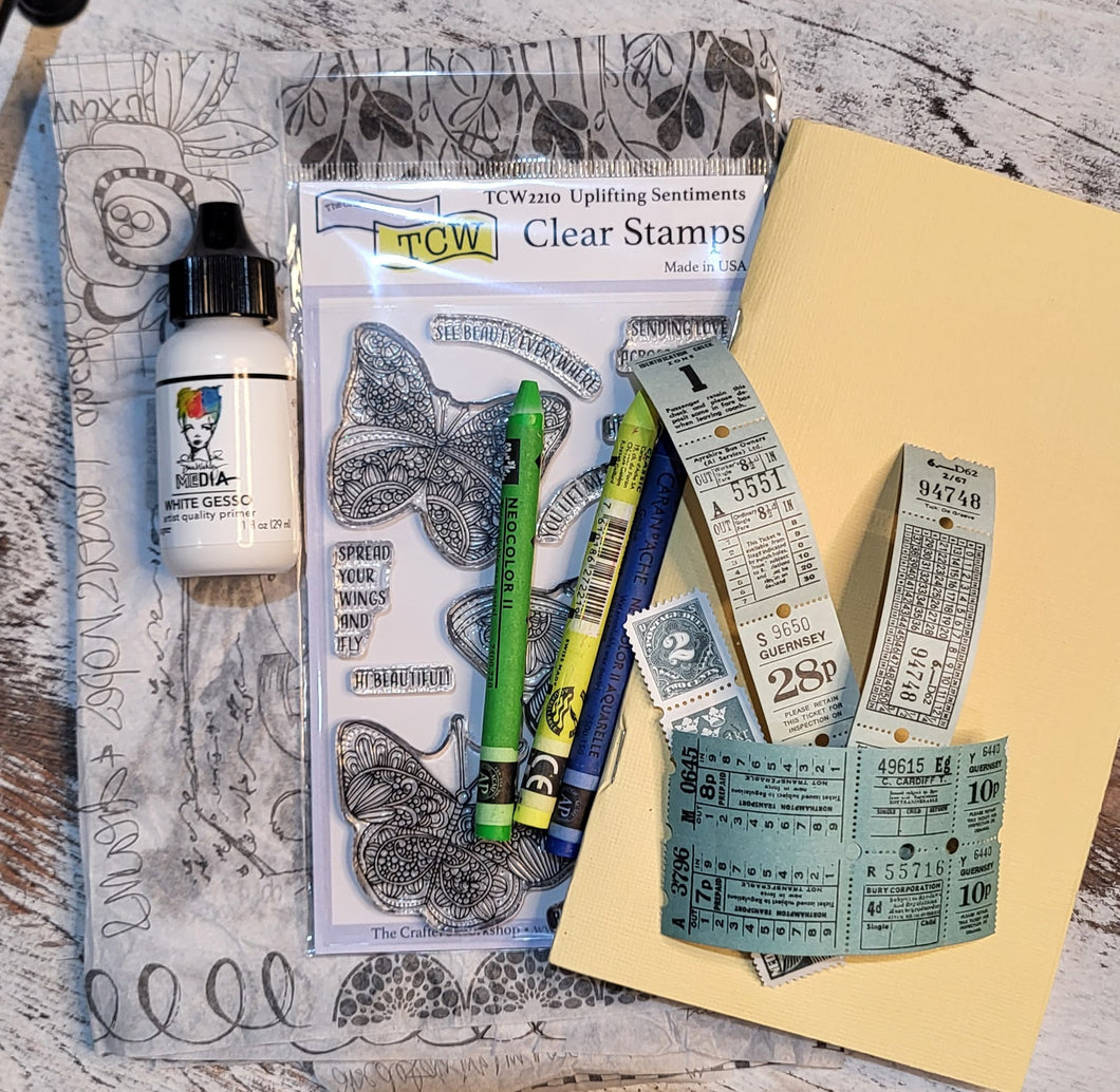 We’ll begin by giving our pages a dreamy base using gesso—a little magic that adds texture and sets the stage for creativity. Next, we’ll bring the pages to life with stamps, splashes of color, and other playful mixed-media techniques. Think of it as prepping your canvas for the stories you’re about to write.