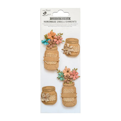 Little Birdie Handmade Embellishments Shades of Brown Floral Jars (CR79722)