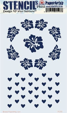 PaperArtsy Stencil Eclectica3 Flowers & Hearts designed by Nicci Dot (PS315)