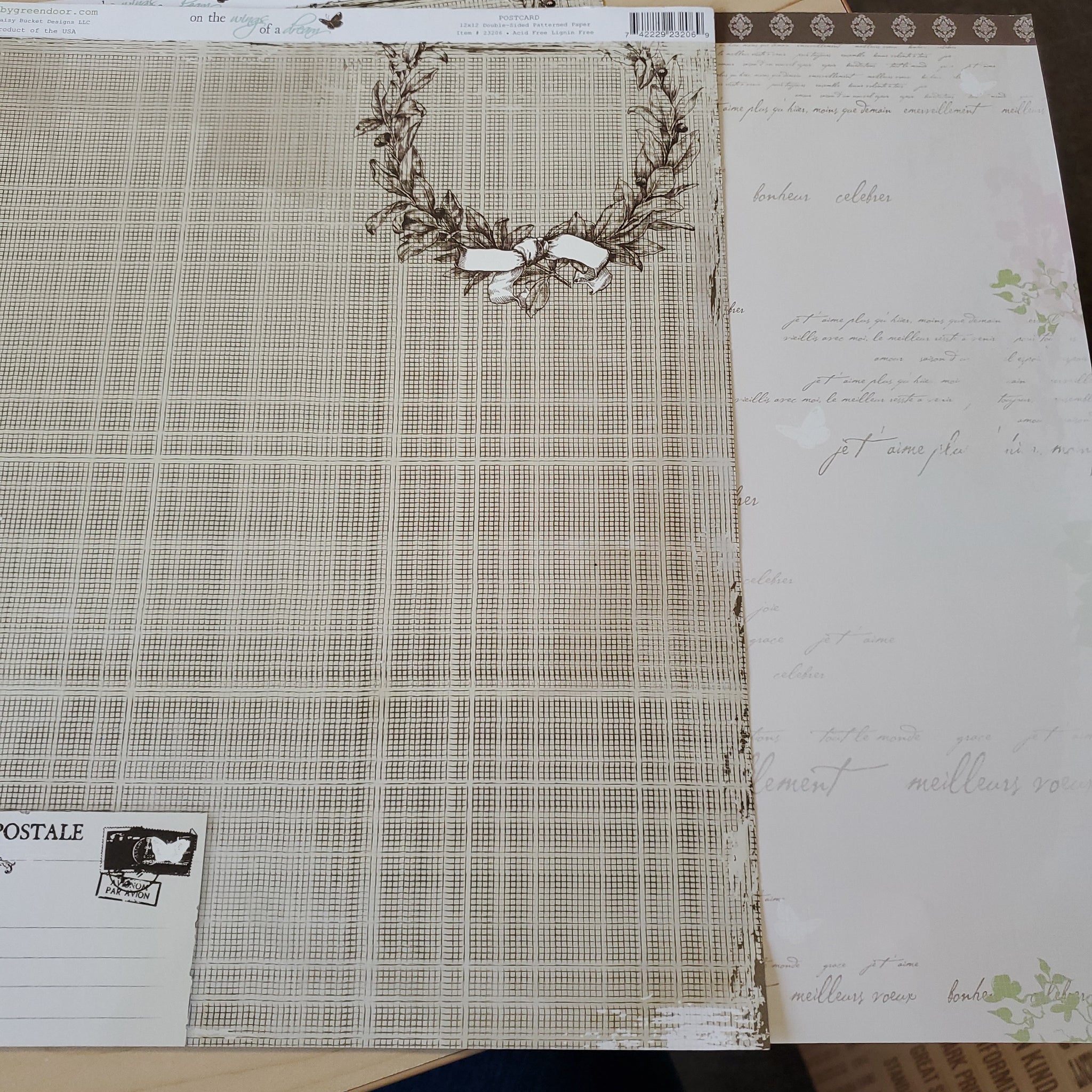 Shabby Green Door On the Wings of a Dream Collection 12x12 Scrapbook Paper Postcard (23206)